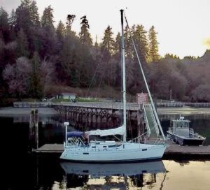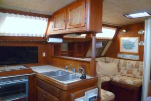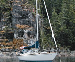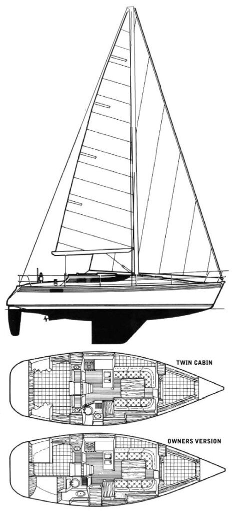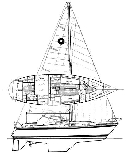 Austria-born George Hinterhoeller emigrated to Canada in the 1950s and began doing what he did all his life: build boats, first out of wood, then fiberglass composite. He was one of four partners who formed C&C Yachts in 1969. He left in 1975 to again form his own company, Hinterhoeller Yachts. The company built two distinct model lines: the better known Nonsuch line of cruising boats with unstayed catboat rigs, and the Niagara line. About 300 Niagara 35s were built between 1978 and 1995. With its moderately heavy displacement, conservative sailplan, and relatively large keel, the Niagara 35 is not a speed demon, and does not point as high as a boat with a deep, narrow fin keel. But thats not what were after here. The 35’s specs are just about what we want for a versatile cruising boat. Note the departure from the traditional V-berth and the offset companionway to allow a full U-shaped galley. Under way, owners say performance picks up quickly as the breeze fills in. If the sailplan were larger, for improved light-air performance, you’d have to reef sooner, and reefing is work. The Niagara 35 is a handsome, classically proportioned cruising sloop from one of the best builders of production boats in North America. It is not considered big enough these days to be a circumnavigator, but certainly large enough for a couple to leisurely cruise the Bahamas, Caribbean Sea, and South Pacific. We found asking prices ranging from around $24,000 to $39,000. See a typical listing here.