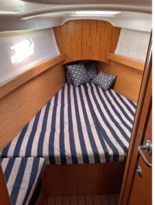 The boat’s numbers certainly suggest it will have better-than-average performance compared to its peers in the cruising world. The sail area/displacement (SAID) ratio is 21.01, the displacement/length (D/L) ratio is 160.6, the ballast/displacement ratio is 36.23, and its length/beam ratio is 3.20. Then again, this isn’t exactly the sort of boat one would take on a circumnavigation or perhaps even a trans-oceanic passage where most serious cruisers would prefer more keel and heavier displacement for sea kindliness and necessary stowage.