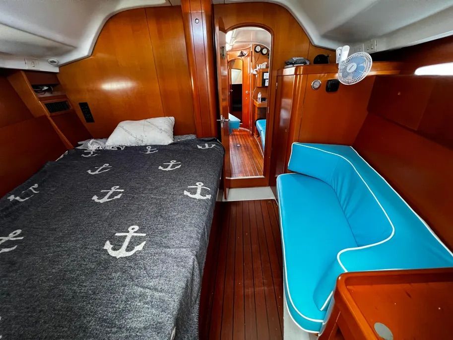 The Owner’s Version has a large cabin aft to port, a head off the saloon, a second cabin located forward of the saloon, and a second head in the bow. The tri-cabin version has two smaller berths in the stern, and the same arrangement forward.