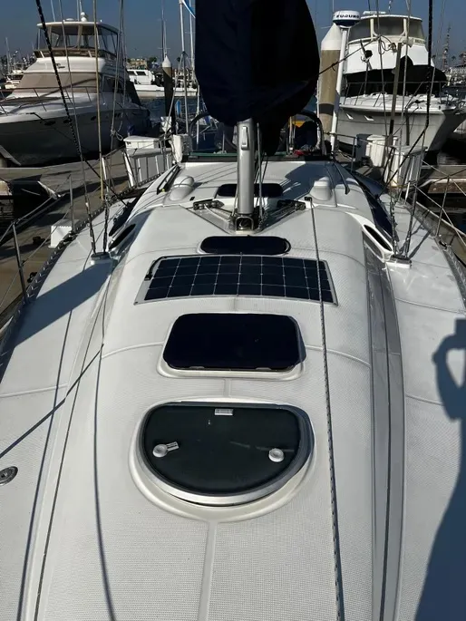 The Sparcraft mast is a 7/8 fractional rig with two sets of slightly swept-back spreaders. The mainsail luff measurement of the cruising version is 47.41 ft.; the racing version is 52.49 ft.. Standing rigging is Navtec rod, and shrouds terminate more than 18 in. inboard of the toerail, which facilitates easy movement along the sidedeck. The backstay has an adjuster. The sail area/ displacement ratio ranges from 17.8 to 19.5, depending on whether you have the standard or race rig.