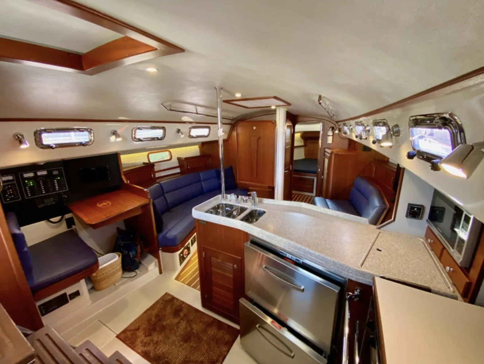 A galley fit for a live-aboard adorns the Blue Jacket 40s well-appointed interior. Her nav station command center is fit for serious passagemaking.