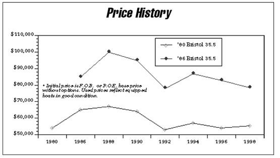 If a Bristol 35.5C takes your fancy, try for one with either a Westerbeke diesel or the equally satisfactory three-cylinder, 24-hp diesel made for a time by Universal. Avoid the Yanmar 2QM 20H, a twocylinder diesel that struggles unsuccessfully to get up to hull speed.