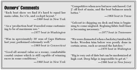 One disadvantage of the new version of the interior is that engine accessibility has been sacrificed. Owners consider access fair to poor in the aft galley interior, fair to good in the double quarterberth version.