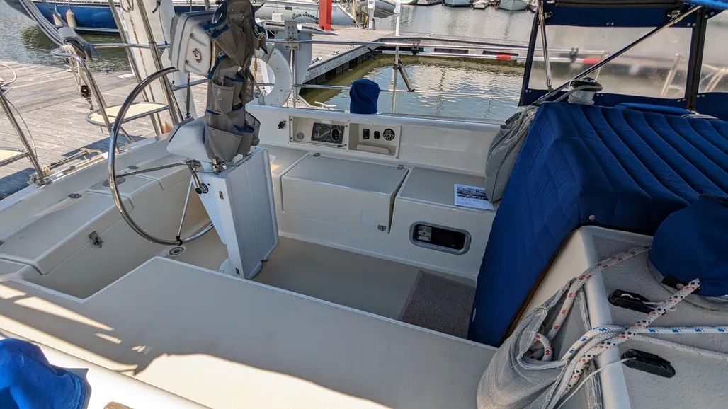 Additionally, a full holding tank adds 912 lb. of weight in the bow, according to McCreary; coupled with anchor and rode, we think that is excessive. The holding tank also services the aft head, so waste may accumulate in hoses under the saloon.