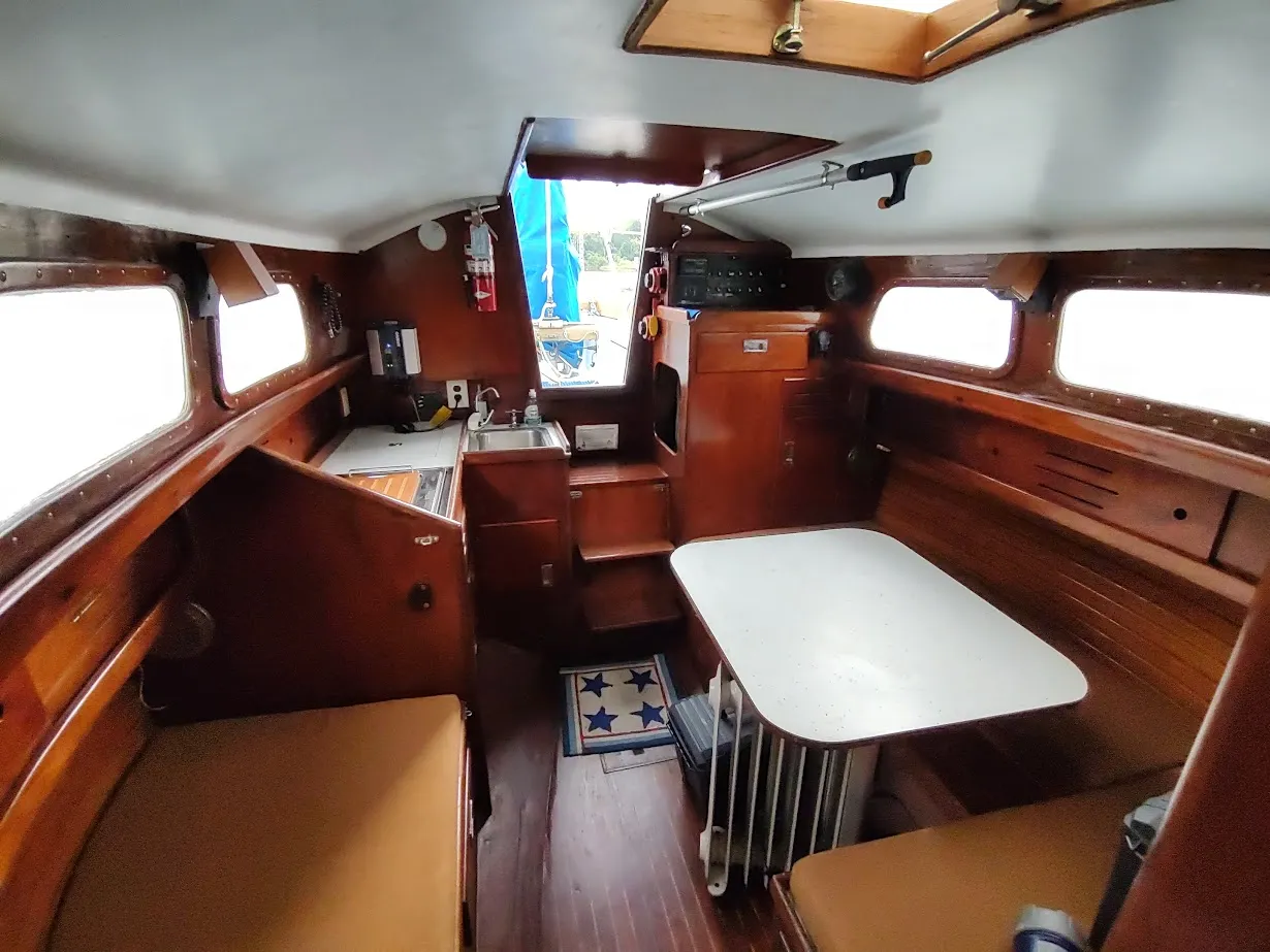 Cape Dory apparently ventured into trying to have a little more modern design by producing around 75 or so boats with a fin keel and sloop rig – Intrepid 9m by Cape Dory. Ours was originally outfitted with the Volvo diesel but was at some point changed to a 27hp Yanmar 3 cylinder. Much of the Cape Dory 30 interior description sounds similar. It’s been a slow project for us with much to do.
