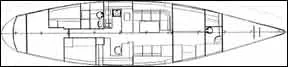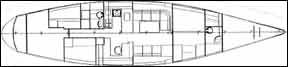 To minimize weight above the waterline, the cabin sole and furniture are constructed of teak plywood on a foam core. A good latch-down system secures the sole. However, on the boat we sailed, the cabin sole was divided into five and seven foot lengths which were much too cumbersome.