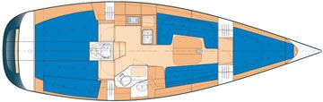 Standard hardware is Rutgerson (travelers and turning blocks) or Andersen (winches), although the buyer can specify his preference. As one would expect from a performance cruiser, the running rigging is well organized, with all control lines led aft to the cockpit.