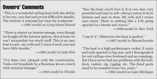 It is obviously not a boat for everybody. If you’re looking for a weekend cottage or a floating condominium, go elsewhere. But if you are in the group of sailors who want a boat between 30 and 40 feet, whose time afloat is spent more than 50 percent in racing, you might want to consider the J/35. And if we were rolling in dough, we’d have to have one to park out in front of our condo, just for the fun of sailing it.