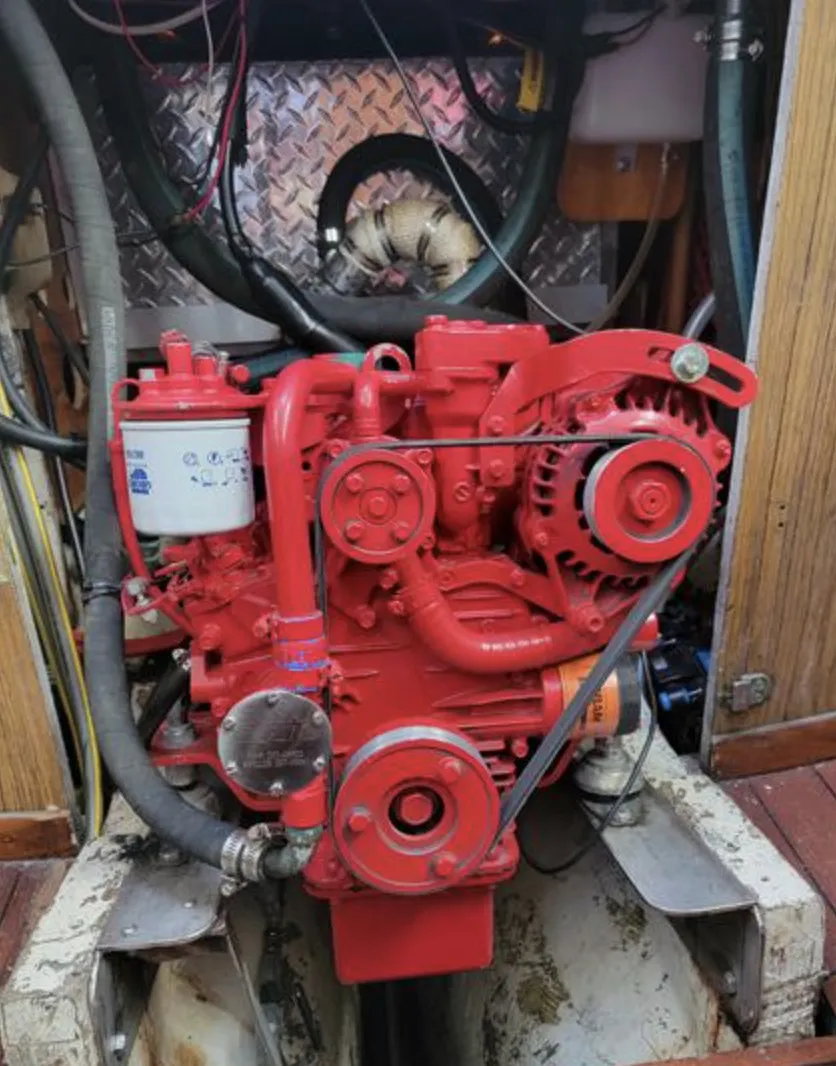 For power the 33 will have either the original Gray 25 hp gas engine, the 27 hp gas Palmer (after 1967), or a small retrofitted diesel. All can provide enough push ahead, but the prop location and size hurts backing down.