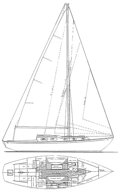 With her short waterline, heavy weight, short rig, large amount of wetted surface, and small prop in aperture, the 33 can hardly be termed a spritely performer under either sail or power. For instance, against the more modern (designed in 1968) but otherwise comparable Tartan 34, the 33 gives away more than 20 seconds per mile under PHRF.