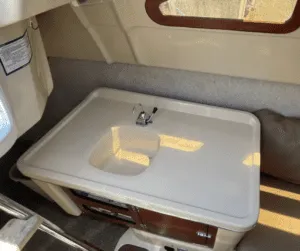 For a daysailer/overnighter, how much galley do you really need. Add a butane cooktop and an igloo cooler and you’re set, with the minimal sink pulling wash-up duty. l-deck joint sealing to prevent leaks