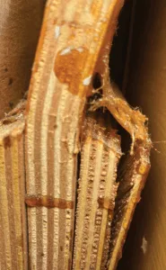 Poor bonding. Many of the bulkheads pulled away from the hull or adjacent structure without signs of wood failure. It appears the glue did not bond properly. This suggests a lack of surface preparation before bonding.