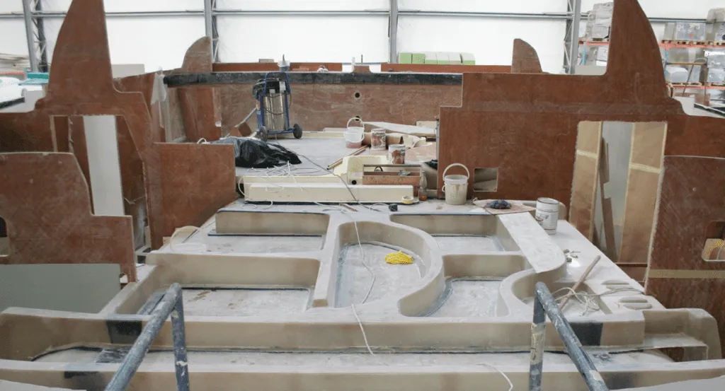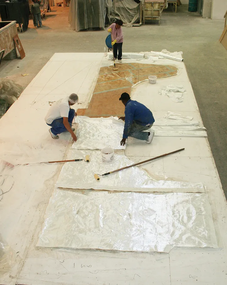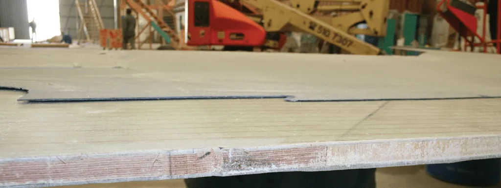 2. A partial bulkhead is hand-laminated on the floor at a South African builder. Loads can concentrate at corners in the bulkhead.