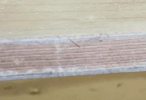 Based on what we’ve been able to discern from photos taken by owners, the plywood used in the bulkheads of the Lagoon 450 appears to be a more economical variety, not the high-quality, high-density, high-strength marine grade plywood that would be preferable in a structural bulkhead.