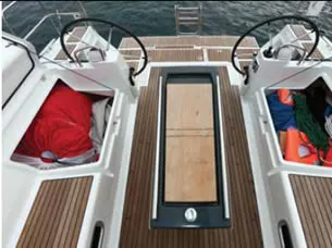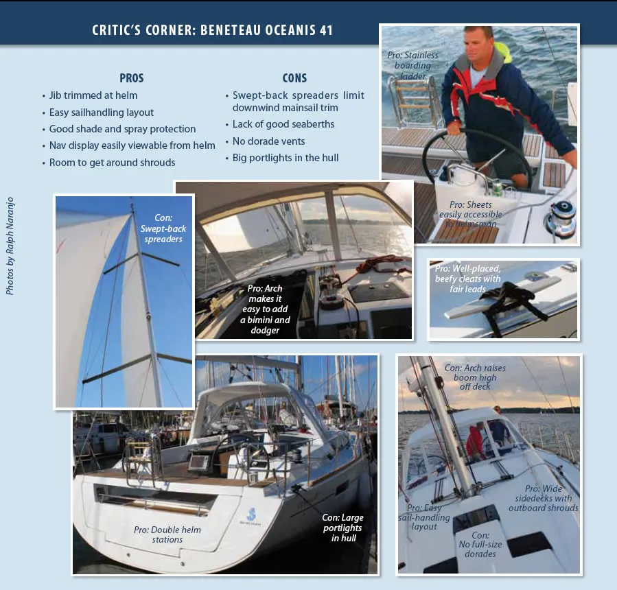 Beneteau has a penchant for detailed engineering, and the new Oceanis line has gone through quite a bit of R&D. The company also shows an inclination for retaining what works and evolving good ideas. Like its siblings, the Oceanis 41 shows a lot of this tried and proven lineage, especially in construction scan’tlings, but it also has taken some bold new strides. For example, the recent advent of the pod-type, rotating sail drive links up with the bow thruster to create what Beneteau calls the “Dock and Go” system. This optional, joystick-actuated feature makes maneuvering in tight confines a piece of cake, but it also adds more system complexity and cost to the boat. And although the system makes docking a dream, we’re not sure what future maintenance issues and costs would add up to. A 41-footer with a conventional sail-drive and no bow thruster might save a buyer a few thousand dollars, but it would also put more of the close-quarters handling challenge back in the hands of the crew.