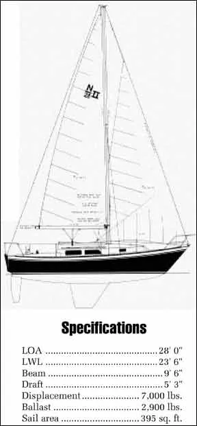 Despite a fairly high ballast/displacement ratio, owners report that the boat is tender. This is due in part to the fairly round midship section, and in part to the fact that few 28′ boats are really very stiff.
