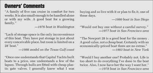 Make no mistake about it, the Newport 28 is a boat built to a price. A common complaint by owners is mediocre fitting of woodwork, leaking hull-to-deck joint, cockpit drains that are too small, plastic valves on through hull fittings, inadequate backing plates for hardware—in short, the entire litany of problems associated with boats built to be low in price.