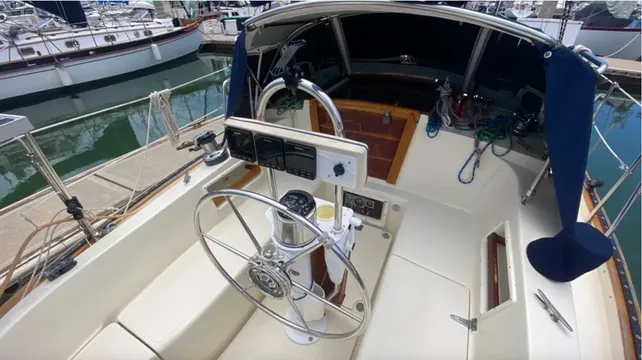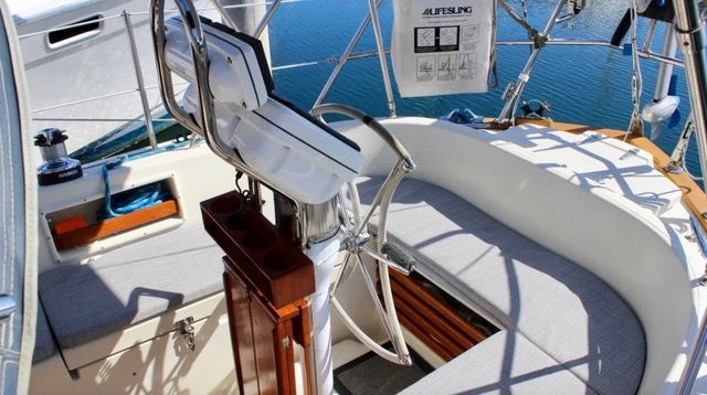 The 34 is an excellent daysailer or distance cruiser suitable for four adults or a couple and two children. The cockpit is too small to seat more than four adults comfortably. However, as Crealock said, a small cockpit is a good thing when you’re getting pooped.