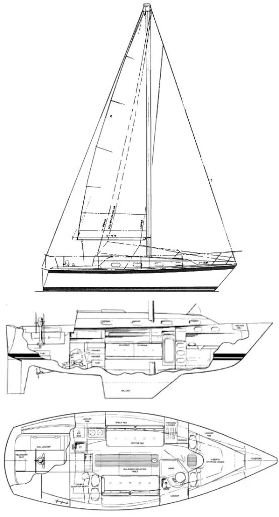 “Hull and keel design make for poor upwind performance. Built like a tank. We added a three-blade prop. V-berth large and comfortable. Head is super. Cockpit is small.” —1984 model in Wayland, Massachusetts