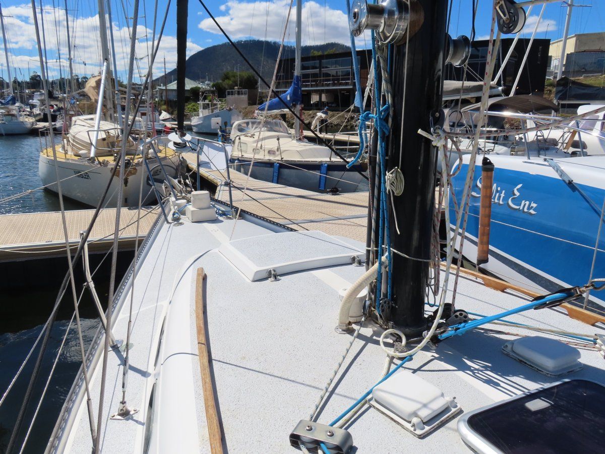 Owners report that the boat has one negative sailing characteristic: a tendency to rapidly develop weather helm as she heels. The normal, rational remedy is to reduce sail.