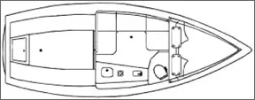 Cockpit Working on the theory that most cruisers spend much of their time in the cockpit, the Rhodes 22 was designed with a huge cockpit that’s 7′ 4″ long and nearly 8′ wide. It’s self-bailing, with a full-length bench seat on each side. The benches have open fronts, which makes for comfortable seating (closed-front benches force you to keep your legs extended), are independently self-bailing, and there’s room underneath for plastic storage bins. Aft, there’s a transverse bench covering a lazarette, which opens to a 6′ wide area that provides access to transom-mounted hardware as well as a great deal of storage space. The coamings, which function as backrests, have a pair of compartments, each with two shelves. The flared gunwales are comfortable for hiking out. And there’s a socket in the sole so that a table can be moved from belowdecks to the cockpit. The stern rail is mounted on the side decks, outboard of the coaming, to make sitting on the coaming tops more comfortable. Optional are a pair of swivel seats—complete with backrest and padded armrest on the rail—that mount on the coaming. The cabin door is hinged horizontally halfway up, with a stainless steel piano hinge. This can be folded out to make a chart table or card table depending upon your inclinations; there’s a molded-in socket for a supporting leg. Or, you can fold the top section down to let you see what the kids are doing in the cabin. Or, you can remove the door completely and stow it inside the gunwale. All the controls are cockpit-mounted and fall readily to hand. The roller furling control line for the genoa is cleated on the cabin top. The mainsail roller furling is controlled by the outhaul and a control line that passes through the boom, with boom-mounted cleats. The boom can be raised via a topping lift to clear the pop-top, or lowered to reduce heeling. There is no vang, which is unfortunate. The jib sheets run through adjustable track-mounted blocks to a pair of winches located aft so that they can be handled conveniently by the helmsman for single-handing. The traveler is very unique. It rides on a stainless steel rod mounted transversely across the twin backstays. The mainsheet cleat is mounted on the traveler block; the traveler controls are at the ends of the rod. This arrangement, odd as it may look, keeps the traveler from intruding into the cockpit space, and provides a bit of shock absorption in case of an accidental jibe. We tried it, and it works. The tiller swings up for stand-up sailing or for easier maneuvering around the cockpit. A hiking stick lets one sail the boat from just about anywhere in the cockpit or up on the coamings, and there are even a pair of clips mounted on the aft rail that hold the tiller in any position in which it is set. The rudder kicks up if it strikes an obstruction, and can be adjusted to provide as heavy or as light a helm as you prefer. Down Below The cabin top features a pop-top with 6′ 4″ headroom; when down, there’s about 50″ of sitting headroom. The boat can be sailed with the top in either position. Like so many other pieces of equipment on the Rhodes 22, the pop-top is a unique design. Unlike most pop-tops, which are supported by pivoting arms, the aft section of the Rhodes 22’s top is supported by a pair of telescoping stainless steel tubes, with spring-loaded detents. To raise the top, you start by lifting the rear portion—lifting only half the top’s weight—until the detents lock into position. A fitting on the forward edge of the pop-top rides in the mast’s sail slot. There are two side-by-side opening hatches in the deck forward of the pop-top, one above the head and one above the dinette. There’s no gasket between the pop-top and the rest of the cabin—a generous overhang and deep lip allow air to circulate and prevent water leaks. The sliding companionway hatch has a built-in key lock. The cabin layout of the Rhodes 22 is roomy and remarkably livable. It is, in large part, a tribute to the idea of making a firm decision about what you want a boat to be, and then resisting all temptations to make it something else. The Rhodes 22 is a cruiser for a couple, with possibly several youngsters. Sleeping accommodations for the couple consist of a 6′ 6″ double berth on the port side of the dinette area; the secondary bunks consist of 6′ V-berths. If you need more sleeping room than this, there’s an optional boom-supported canopy system that General Boats calls a “Boom Room.” It converts the cockpit to a standing-headroom second cabin with a padded floor, and provides luxurious camp-aboard accommodations, though with minimal privacy. When the dinette berth isn’t in use, half the “mattress” sections become backrest cushions for a settee, while a rotating, telescoping-base table that helps form the center section can be raised to table height and used in the dinette, or moved out to the cockpit, or stored in tracks under the forward deck. The galley and head are on the starboard side. The galley features a 4-1/2′ counter containing a sink, stove and a large, front-opening icebox with adjustable shelves and an ice-water tap. There’s a large open storage shelf just below the portlights, and a deep cabinet just below that. There’s more storage underneath the counter. Built into the face of the top shelf are 12-volt DC and 110-volt AC outlets. Access to plumbing and electrical connections is good. Spitzer (who has a weakness for puns) describes the Rhodes 22’s head as The Swell Head. When we compare it to the primitive accommodations on most small cruisers, we must agree. It’s fully enclosed, with a clever multi-paneled door that opens up to provide a large, non-claustrophobic space, or closes to occupy a minimum of floor space when it’s not in use. Inside, there’s a marine toilet, with sea cock-controlled water intake, holding tank and fittings for dockside pump-out or macerated discharge. Inside
