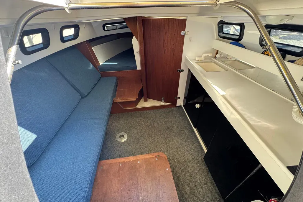 The Rhodes 22 has two molded foam sections glassed into the hull; one under the forward bunk and one under the cockpit sole. Spitzer said that these make the boat unsinkable, an important safety feature not found in most small cruisers.