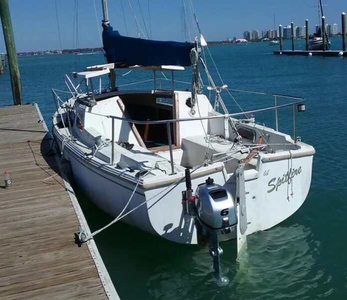 Fun to read this review. My parents got one in the mid-’70s and I “inherited” her. My wife and I spent our honeymoon cruise on her, later we packed our 3 kids and a dog in there for a 5-day cruise, and then I fixed her up again for a 25th anniversary honeymoon-reprise cruise. Not a fast boat, but to learn to sail and cruise? Perfect. And growing up cruising in such tight accommodations made the trimaran I have now gravitated towards (a reaction to sailing slowly?) quite tolerable. A perfect starter-boat. Mast-raising is easy if done carefully and slowly with appropriate gin-pole and some “baby-stay” guy wires: the trick is to get the baby-stays to rotate around the same point as the mast-base so they are tight all the way up. Or to have some help keeping the mast straight during raising.