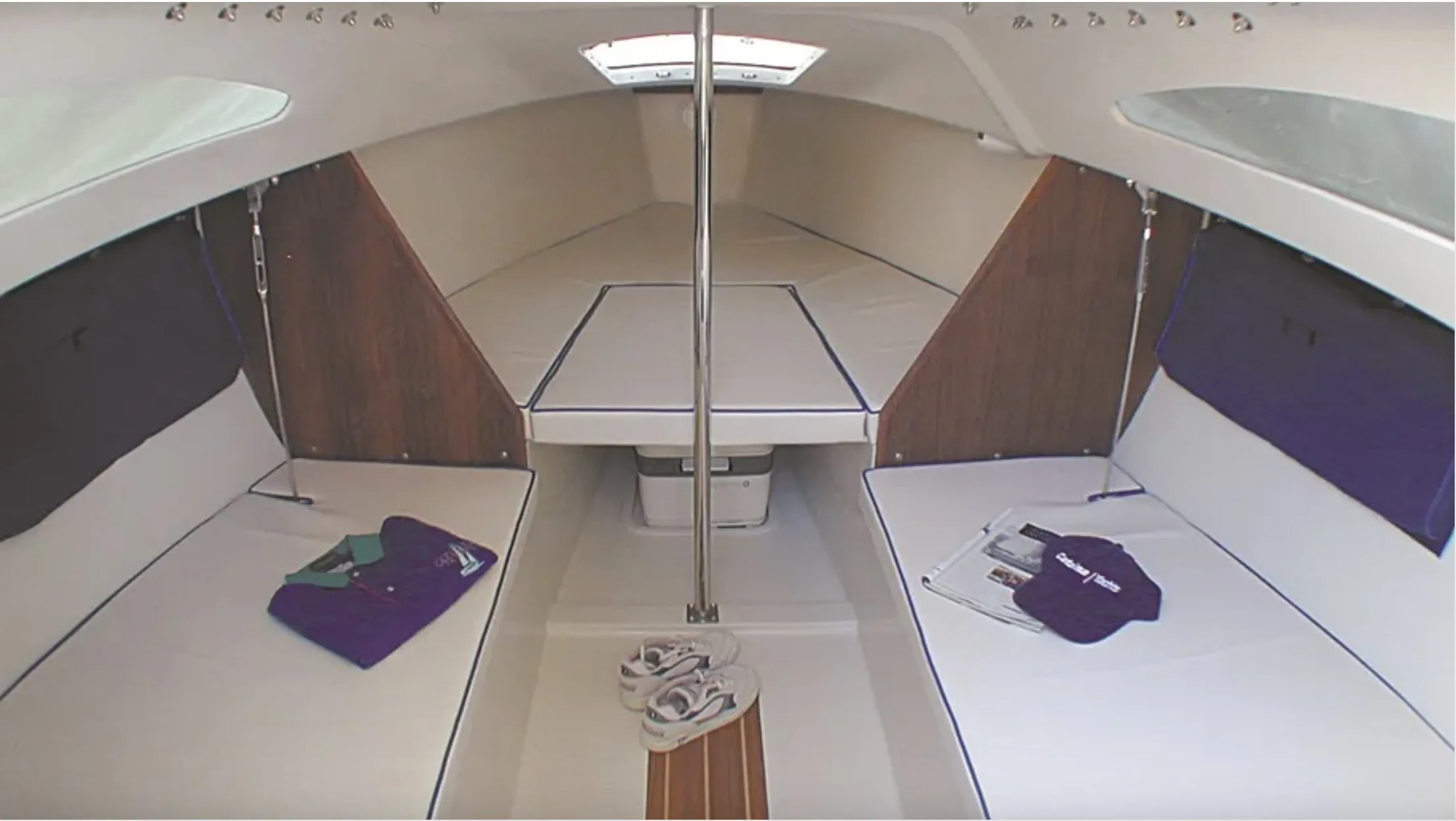 Catalina takes credit for pioneering the one-piece hull liner that has become standard in most high volume small boats. However, it should be noted that the liner is basically a cosmetic component, not a structural member, and the hull must get its strength from the hull laminate and bulkhead reinforcement.