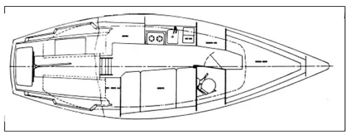 There have been two interiors: a traditional, aft galley layout, and a midships galley/dinette version. Although owners tend to prefer whichever layout they have, there is some consensus that the traditional layout offers better storage and a more reasonable use of space. With the dinette made up into a double berth, that version has six berths—at least two more than you really want on a boat this size. On the aft galley model, the starboard settee makes up into a double, once again giving you six berths. Unfortunately, not all the berths are very usable. Most owners report that the forward V-berths are too short and too narrow to be comfortable for two people, so try it out before deciding on the boat. The quarterberths are the only decent size berths on the boat.