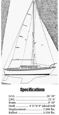 The variety of options that significantly affect the performance of the Catalina 27 means that you must carefully evaluate the individual boat when determining how she is likely to sail. Most Catalina 27s are the standard keel, standard rig model. About half of these have optional inboard engines, while the others have outboards mounted in an awkward cockpit well. The outboard-powered versions are slightly faster than the inboard boats, since they have less weight to drag through the water.