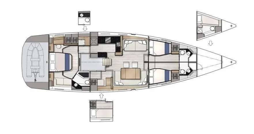 Interestingly, the accommodations layout is almost identical to the Swan 59 that we owned for many years, an exceptionally comfortable, bulletproof, and sea kindly offshore yacht. Sisterships tend to sell for <$500k.