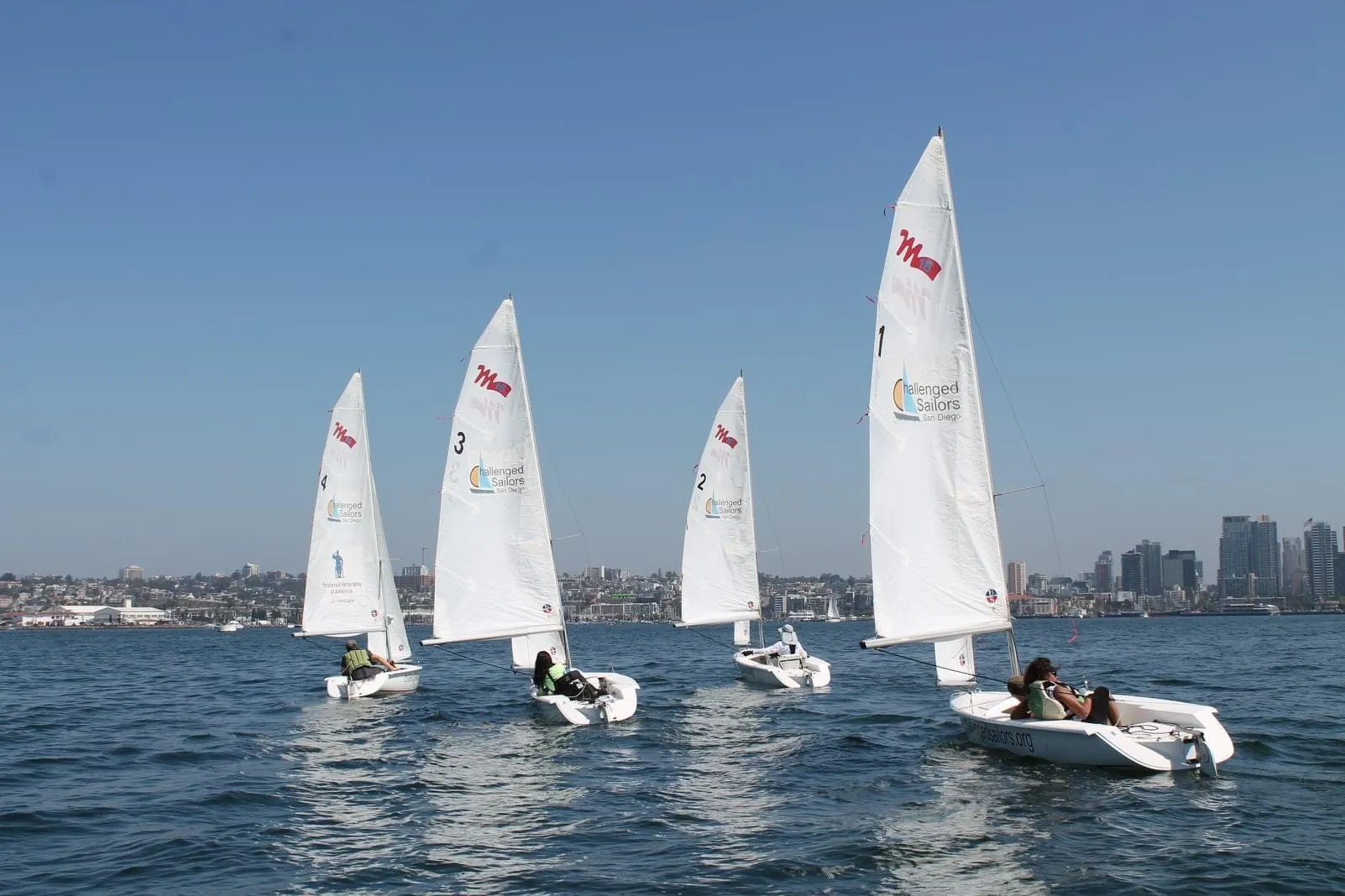 Challenged Sailors San Diego takes people with disabilities sailing every weekend in the San Diego Bay on their fleet of eight Martin 16s. Their general rule is that anyone who is medically stable and can follow directions can sail these boats from the front seat supported by a trained companion sailor in the back seat. Sometimes service dogs join the fun.