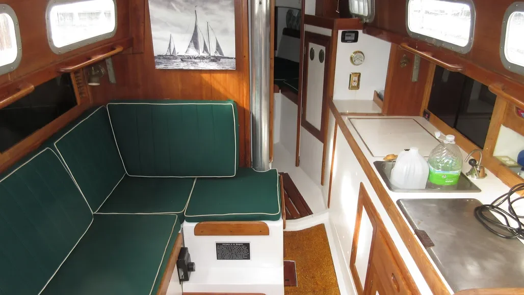 We came away with a profound realization. When you’re shopping for a 70s-vintage sailboat, it pays to find one that’s been repowered. We ran into the quintessential “barn find” when we started looking at these well-regarded boats. That gleaming red gem in the accompanying photograph is a brand-new Beta Marine diesel with 40 hours on it aboard a Tartan 30 listed for sale in Newport, RI for $14,900 (now sold). For comparison, we offer a photo of another used Tartan 30 listed for $12,000 showing the original Universal Atomic Four. You get the picture. When you’re boat shopping, buy the engine. If you find a previous owner who has replaced the boat’s principal machinery, it’s highly likely a sound hull and rig comes with it.