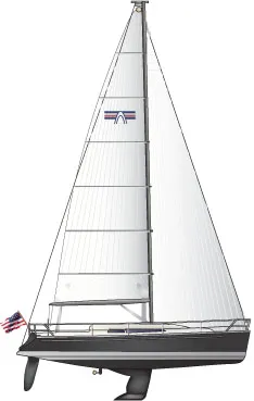 Small spinnakers have been an Achilles heel for fractionally rigged racers. Jackett thus gave his design an oversized chute.