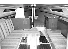 Company literature provides a general description of the Olson 34 layup: a one-piece monocoque hull consisted of mat, 18-ounce bi-directional glass and roving, with extra laminate in high-stress areas. Beams constructed of unidirectional roving and woven roving were laminated to reinforce the hull and distribute loads from keel, mast, and engine. Bulkheads and berth tops were bonded to the hull with fiberglass. The original schedule called for a cored hull and deck, however only hull #1 followed that schedule.