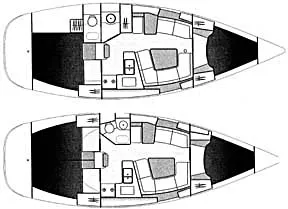 Our preference is the two-cabin arrangement, which provides berths for six adults and has a more spacious head.