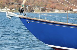 Another Chesapeake Bay local, George Dunigan, has favored a cruising tack with the restoration of his Pearson 41, Lightfoot. And as the photos in the accompanying chart show, his Rhodes restoration efforts reveal how modern coatings can help give an older boat a facelift and make her easier to maintain to boot. With an Awlgrip-coated hull, Interlux Perfection buff-colored deck, and Cetol-sealed woodwork, she’s an eye-catcher and a great example of what can be done to rejuvenate a sound but cosmetically tired sailboat.
