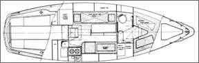 Later 27s had a more traditional layout with settee berths, an aft galley, no quarterberth, a chart table, and a larger athwartships head. The result is still cramped but with better use of space, especially with elimination of the dinette.