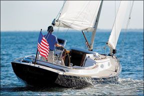 The original is enshrined in the Mystic (Conn.) Seaport museum, but Garry Hoyt, always in search of a brighter idea, joined forces with designer Carl Schumacher around 1993 to produce a modern version. The Alerion Express 28 is true to the timeless look of the model, but made of modern materials and given a modern (though hardly unknown to Capt. Nat) fin keel and spade rudder. Advertised as “the prettiest girl at the dance,” over 400 hulls have been sold to date.