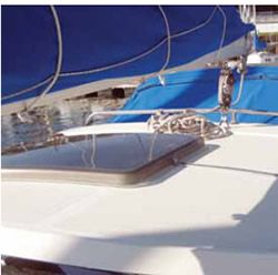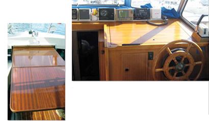The pilothouses front windows have windshield wipers, and the front center window opens up for ventilation. An interesting feature testers noted was a sliding hatch above the wheel and seat that allows the helmsman to stand up for a good view of the sails, deck, and seas.