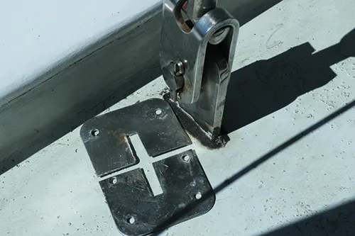 To form the mast step, ½-in. aluminum plate was TIG-welded to form a massive H-beam. The H-beam was then through-bolted to the floor timbers, and the mast sits in an oval-shaped aluminum weldment that is bolted to the custom mast step. This arrangement provides a strong platform and eliminates corrosion problems that occur if a mast is stepped in the bilge. A tie-rod extends from the mast step to the deck to keep the deck from overflexing or “panting.”