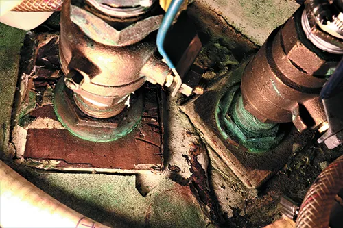 Valiant bonded their boats to protect them from electrolysis. Seacocks, prop shaft and all underwater hardware are tied to a 6-in. by 6-in. zinc that is recessed into the hull. On older boats we’d recommend a corrosion survey to ensure that bonding system has no stray current leaks and that the anodic protection is properly matched to prevent galvanic corrosion.