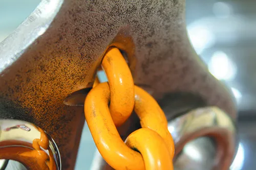 We had looked at hooks, methods of attaching snubber-to-chain, and found many of them wanting. The best hooks undoubtedly come from the lifting industry where hook design is considerably more advanced than anything the marine industry offers. Lifting hooks are painted steel, powder-coated steel, or very expensive duplex stainless. We’ve not found a high-quality galvanized lifting hook.