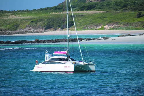 This report focuses on multihulls, because that is what we sail, but most of what we learned from this project can be applied to monohulls, as well. Our catamaran Josepheline is 38-feet with a 22.5-foot beam and draws 3.25 feet, weighing in at about 7 tons in full cruising mode. To put this into context our cat is the equivalent in windage to a 45-foot 13-ton monohull.