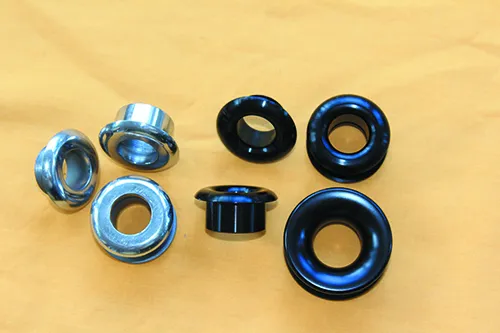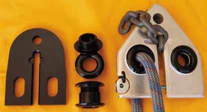5. From left: Stainless steel twopart threaded rings, two-part aluminum rings, and standard low friction rings from Ronstan.