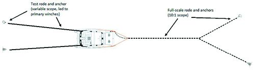 Our test boat, a 34-foot catamaran, became our test platform. Securely anchored in a number of soft mud locations, we pull the smaller anchors toward it using the primary winches.
