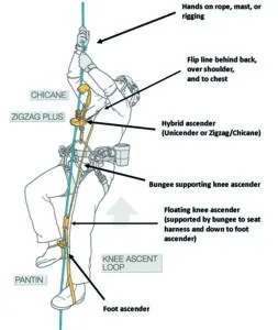 - You are now secure to work, supported by both the foot and by the knee ascenders, two flip lines, and you are backed up by the chest ascender. Safe.