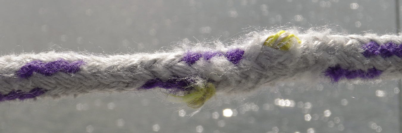 Look for fibers that shed when rubbed with your fingernail. Although the conventional wisdom is that the cover bears the brunt of the damage, we’ve found that with lighter colors the damage can go clear through a 3/8-inch line. The portion of a halyard that lives inside the mast is likely fine, while the bit near the masthead may be severely degraded by UV and chafe.