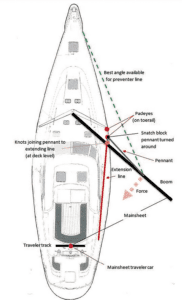 Don Street has been advocating for end boom sheeting and gybe preventer tackles for decades. He illustrates them in most of his books and cruising guides, and now with new lightweight, super strong, zero stretch dyneema this gear is even more practical. Lots of boats have no end boom bails or fittings, but they should be installed and used – led forward to the stem head, then back to a winch. He sold his legenday 100+ year old yacht Iolaire and its new owner immediately took it out, crash gybed it, and sank it due to not using the end boom gybe prevention that Don had been preaching basically since WW2.