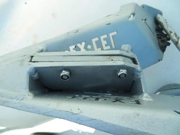 The fluke is detachable, with the shank coming up from below through a very robust socket. It locks into position under tension and is retained by a pair of non-load bearing stainless bolts. There are two holes in the shank near the fluke. The upper hole is for lashing to the roller and the lower holes is for a tripping line.